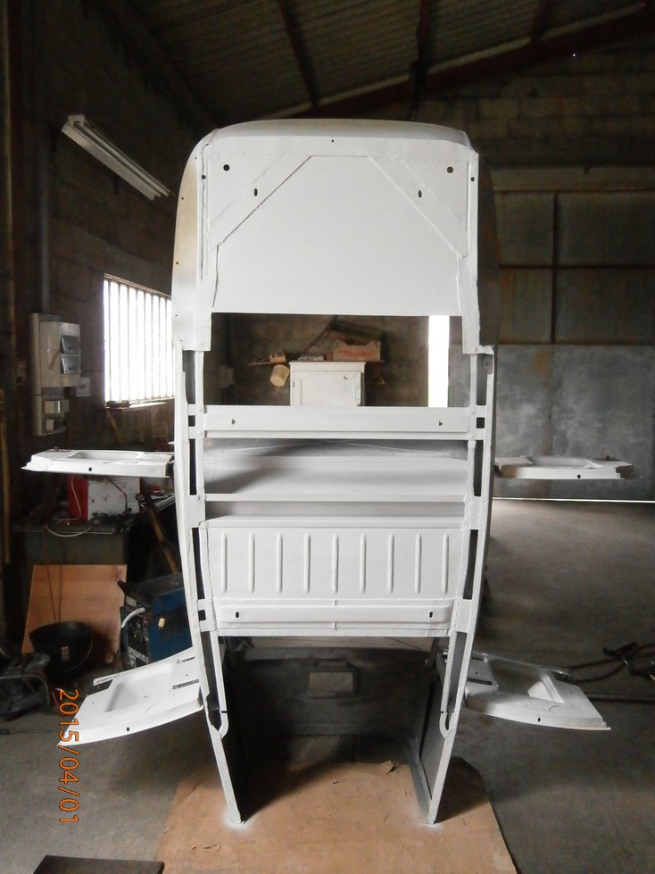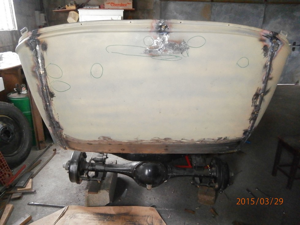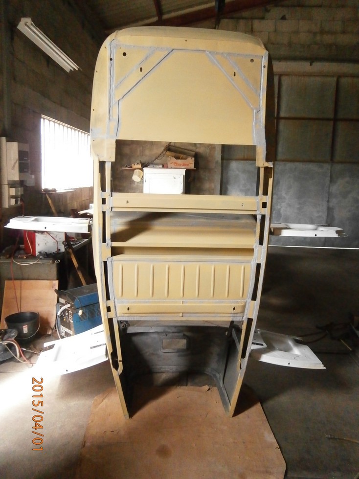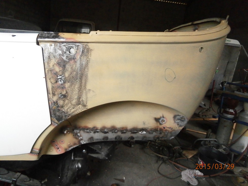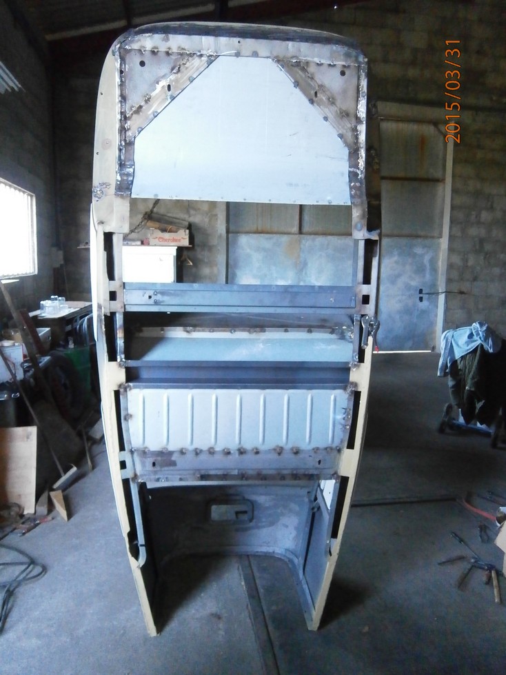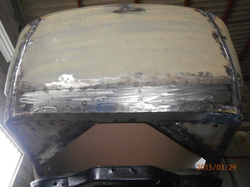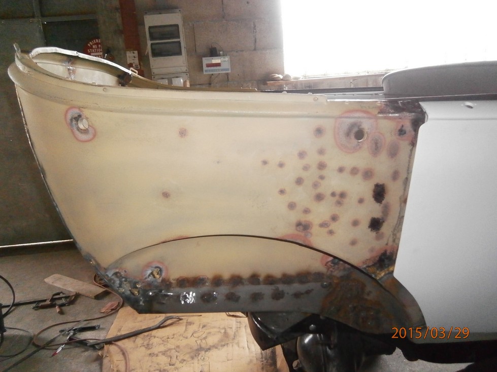 La reconstruction se termine petit à petit par la soudure du fond situé sous la banquette arrière.