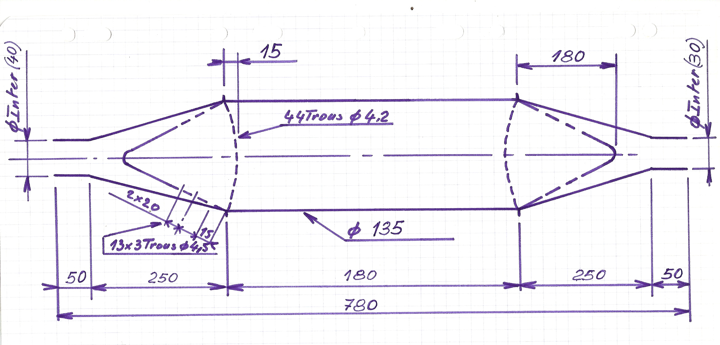 j'ai refait mon échappement de B2 en tôle de 1mm. Je n'ai pas pris d'inox car la sonorité de ce matériaux et trop métallique à mon gout. Je te donne ici les dimensions pour une B2 ce qui ne doit pas être très différent d'une B14.