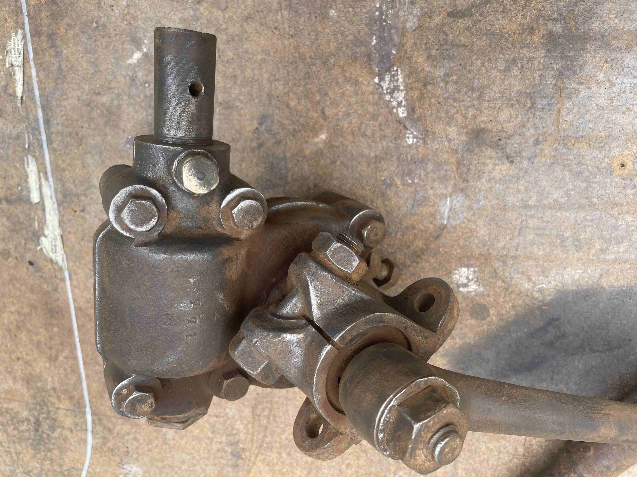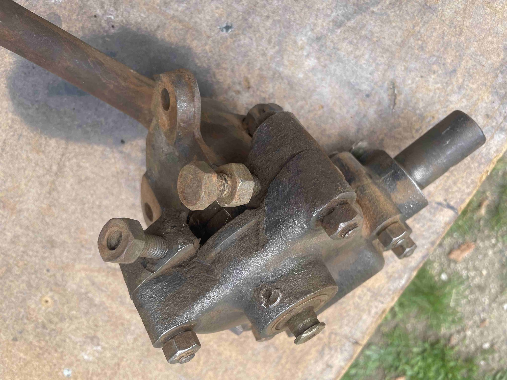 Un boitier de direction complet et fonctionnel. Origine incertaine. Peut-être type A ? C'est CITROEN c'est sûr. Les demi-boitiers portent les références 771 et 772. Fixation par 2 boulons diamètre 10 écartés de 80 mm.