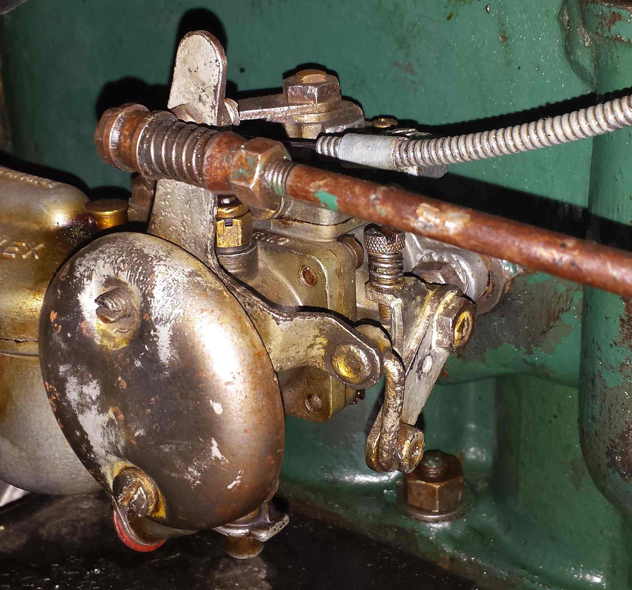 Ci-joint une photo où l'on voit le système de biellette qui relie la partie articulée dans le plan de la cloche de "filtre à air", partie actionnée par la tige de l'accélérateur, au système articulé lui dans l'axe du volet d'admission. Un petite tige métallique à la forme torturée fait le lien.