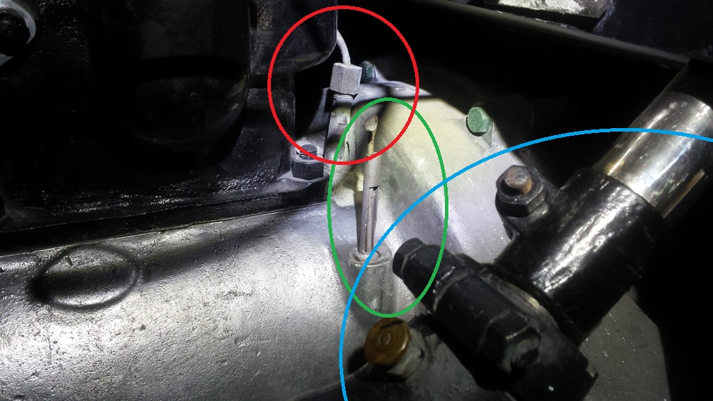 Une info en image, en vert sur la photo, ma jauge à huile, qui est un simple fil de fer.