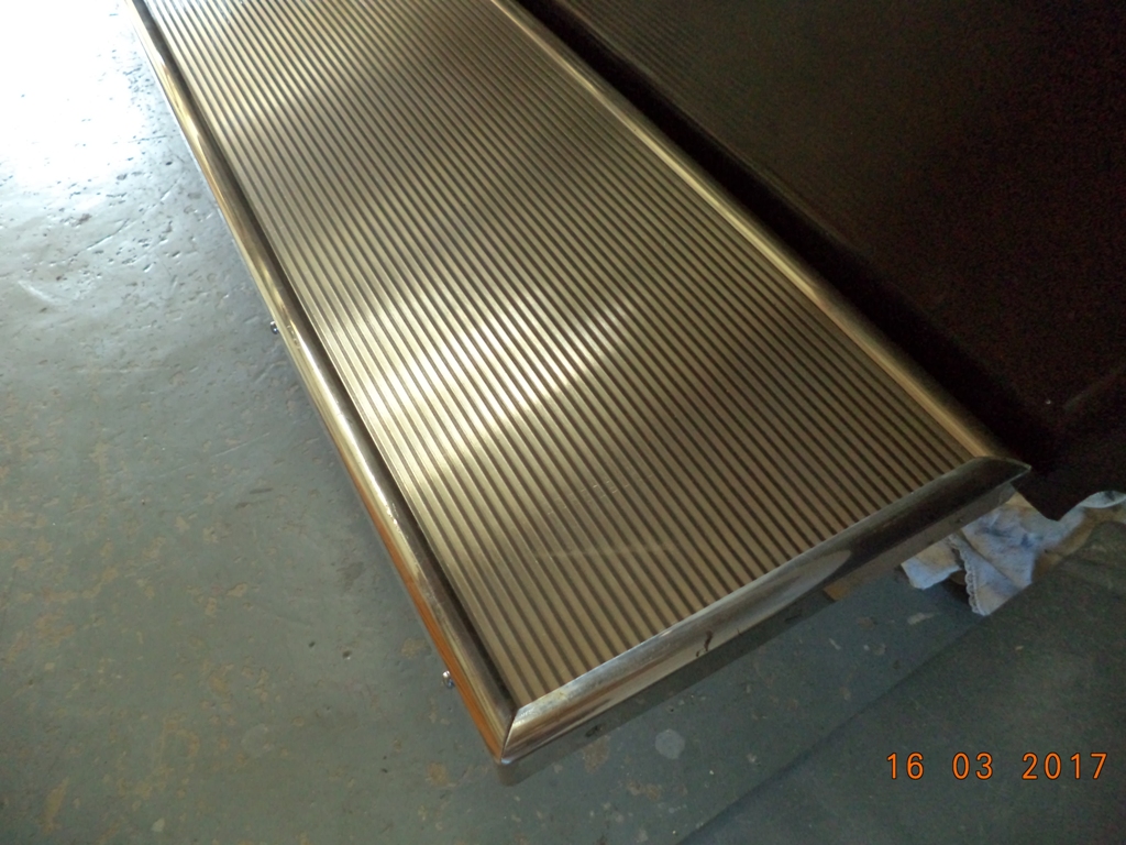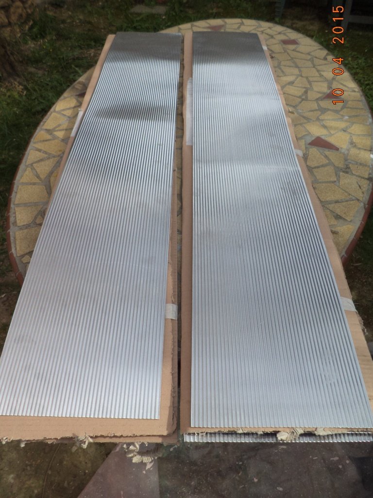 Pour une B2 que je présente dans la rubrique "restauration torpédo commercial B2", j'ai fabriqué les tôles alu avec petites ondulations pour les premiers modèles au format 220*1400 en 8/10 d'épaisseur.