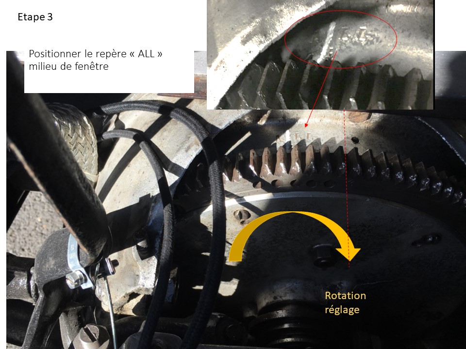Pas facile d'être précis avec le positionnement du repère "ALL" donc préférable de regarder le taquet de soupape.