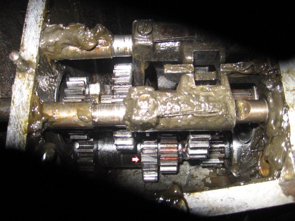 Comme elle était très bruyante je regarde l’huile, pas au niveau je décide d’en remettre et la je me trouve immédiatement à patauger dans l’huile ! En passant dessous je constate une fente dans le carter. La seule solution pour moi est de partir a la recherche d’une nouvelle boite et attendant à ne faire que de très petits trajets.