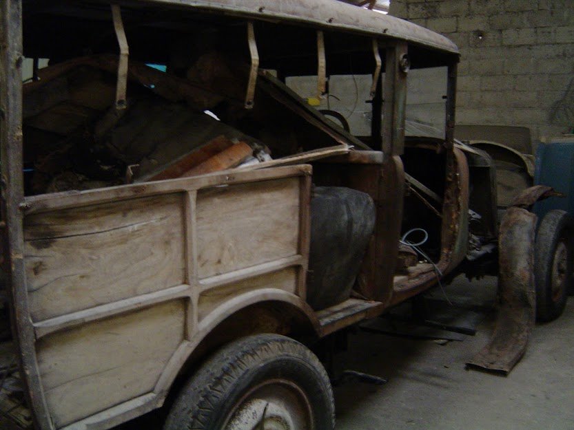 En effet celle-ci avait été modifiée en camionnette, ne reste donc du cabriolet que capot, auvent, pare brise et portières...