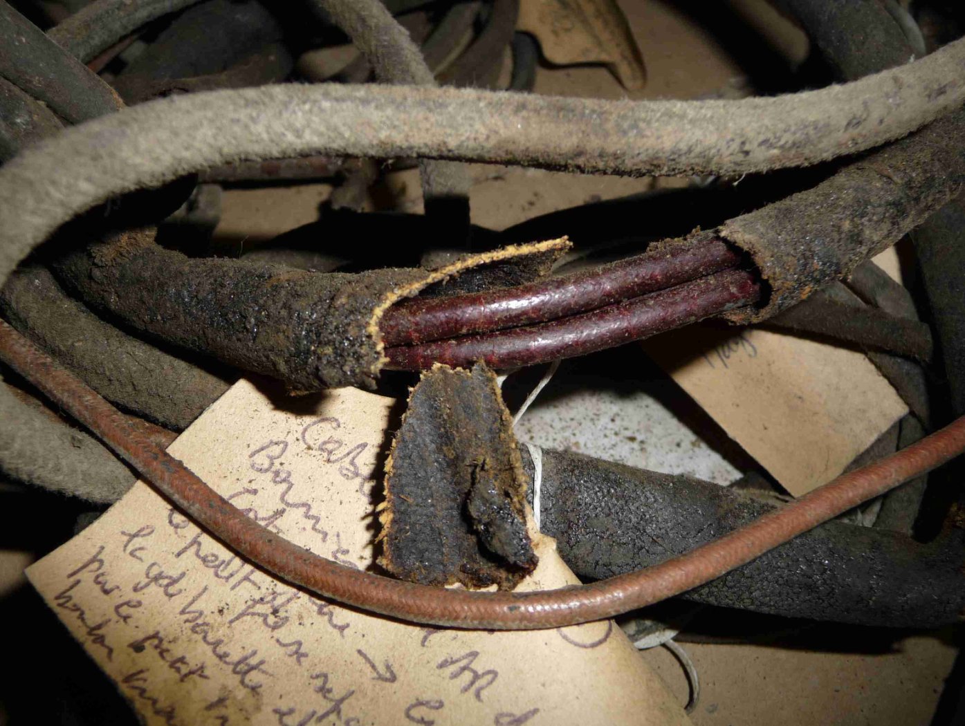 J'ai conservé tous les fils que j'ai déposés de ma B12. La couleur noire semble dominante pour les gaines mais était-ce bien celle d'origine ou est-ce le temps qui a tout noirci ? De plus certaines gaines sont souples et d'autres sont cassantes. Ci-joint une photo pour se faire une idée: