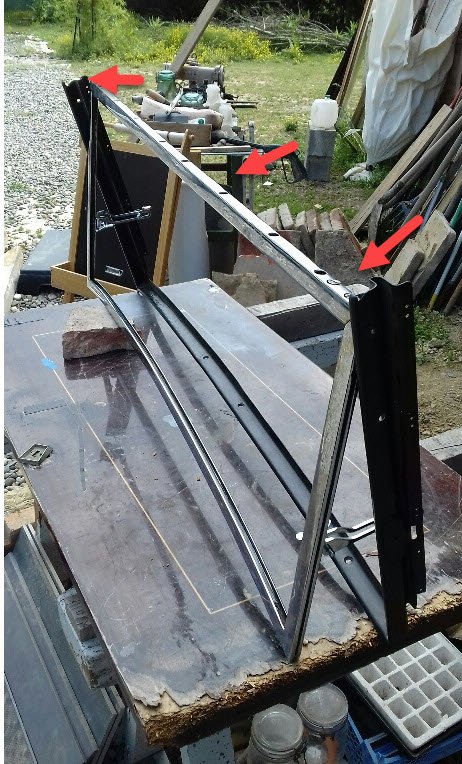 ma question est: comment le cadre chromé est tenu dans sa partie haute? une charniere?