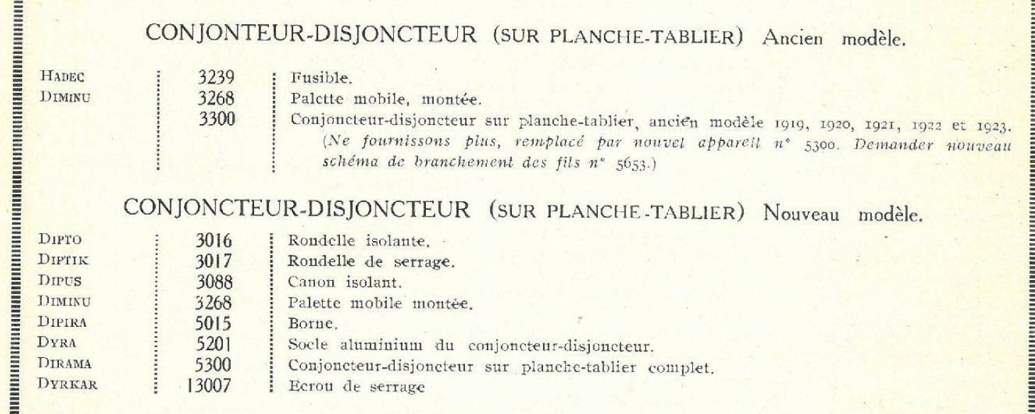 Les tous premiers conjoncteurs/disjoncteurs avaient une forme bien spécifique rectangulaire (repaire 6, référence 3300), ils ont été abandonnés.