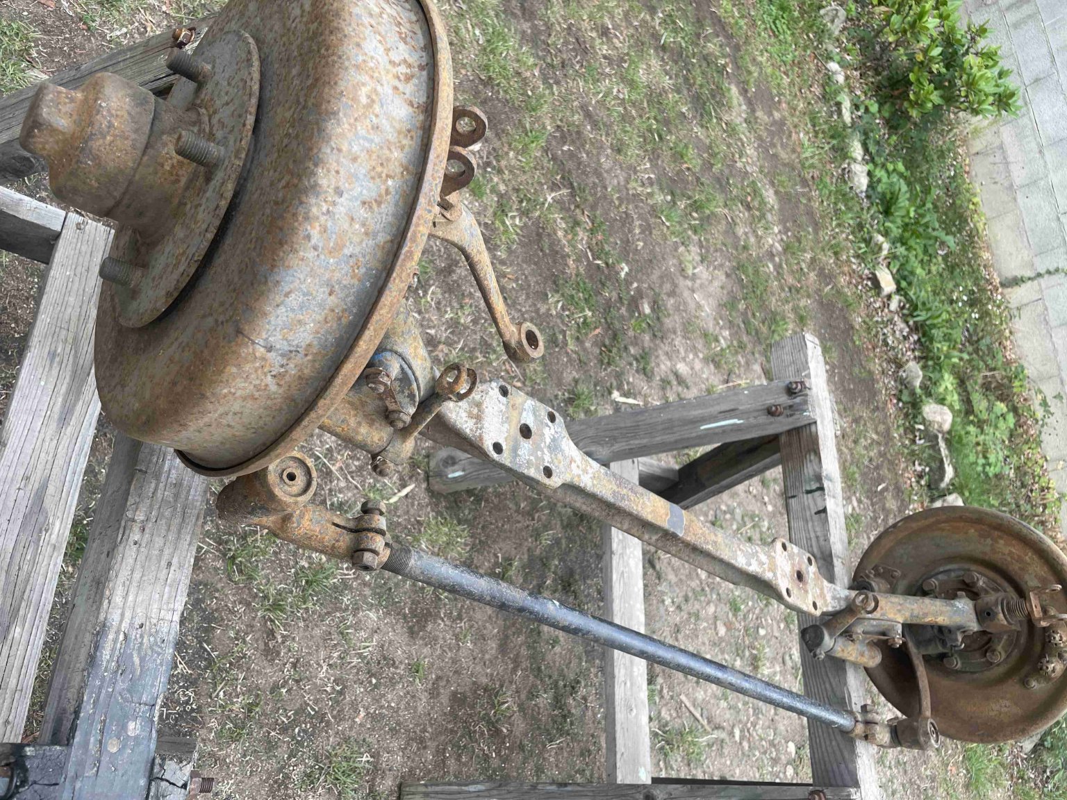 Je propose à la vente un essieu avant probablement de B14 pour pièces. Il était monté sur ma B12 quand je l'ai achetée. Je dis bien pour pièces car la pièce maitresse a dû être coupée et soudée comme en témoigne la dernière photo. La fiabilité n'est donc pas garantie...