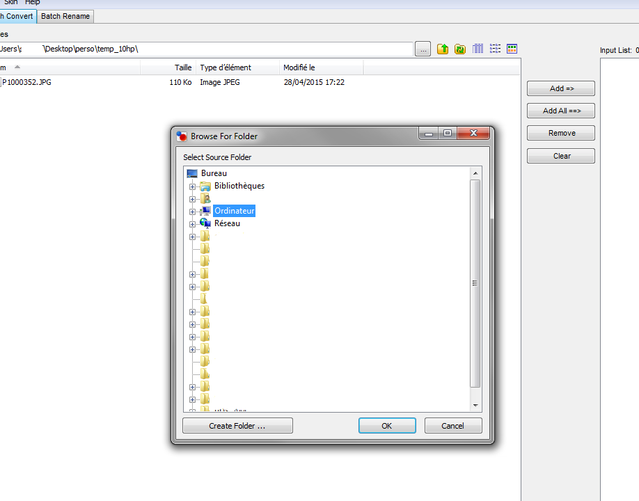 Nous allons donc choisir le répertoire de travail où se situent vos photos (en haut à gauche de l'outil)