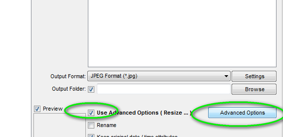 Sélectionner "Use Advanced Options" et cliquer sur le bouton "Advanced Options" pour régler la taille maximale de vos photos