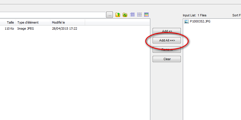 Avant dernière opération sélectionner vos photos à traiter, dans mon exemple je les traite toutes en sélectionnant "Add all"