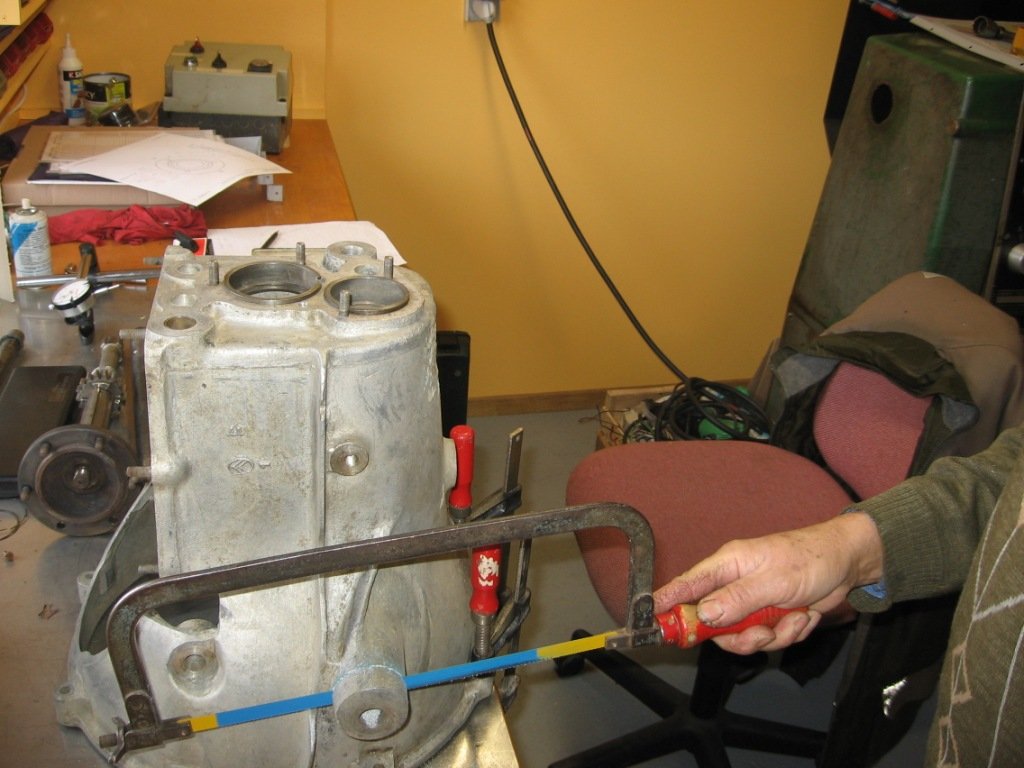 Il faut scier un morceau, mais ce morceau servira à refaire l’oreille de la vis de maintien de la bride du démarreur, que j’ai fais souder par un professionnel, je n’ai pas l’équipement et le savoir faire pour l’aluminium.