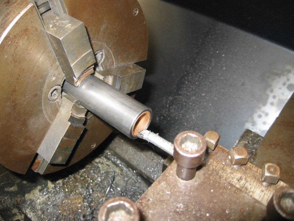 Usinage des logements des bagues bronze montées serrées (bagues 12 h dans le congélateur et tube légèrement chauffé)