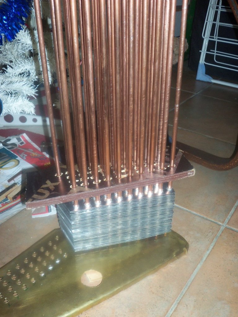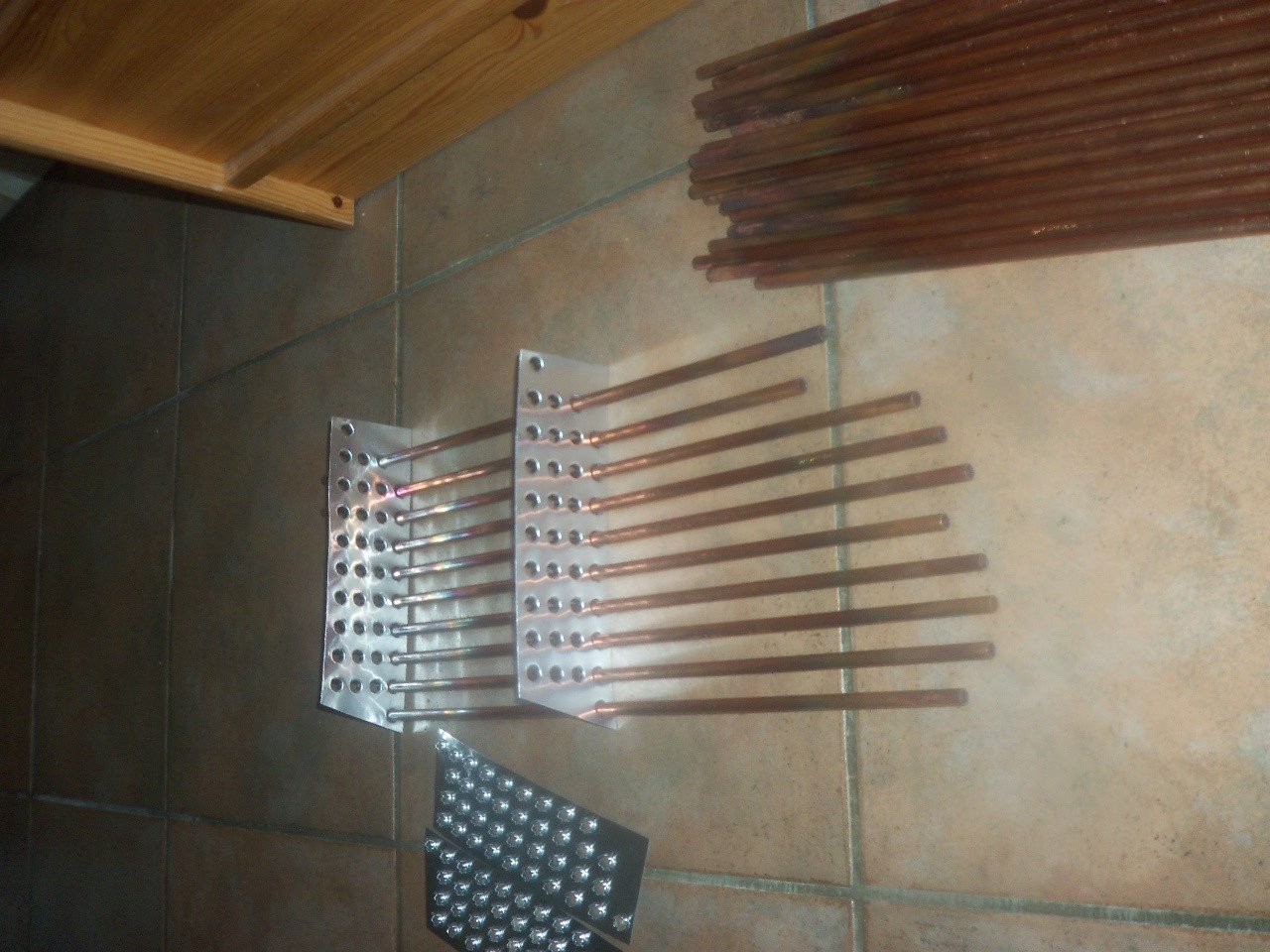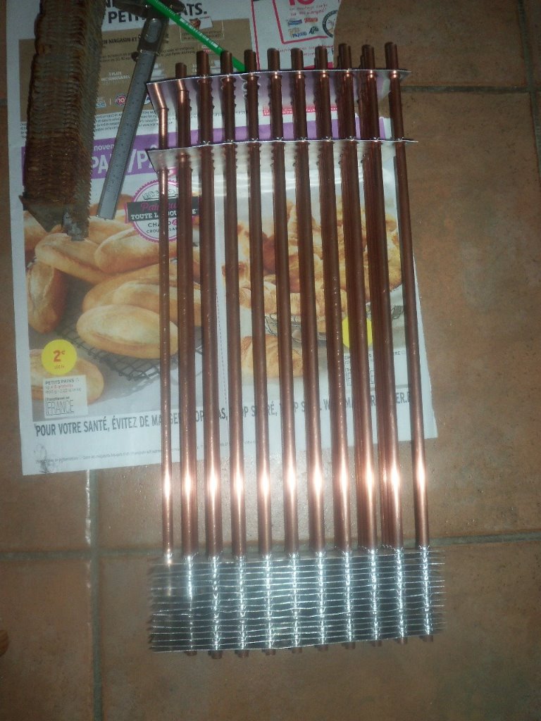 La question se posait du procédé. Les tubes d'abord ou bien les ailettes. J'ai opté pour un compromis. Deux ailettes et un rang de tubes.