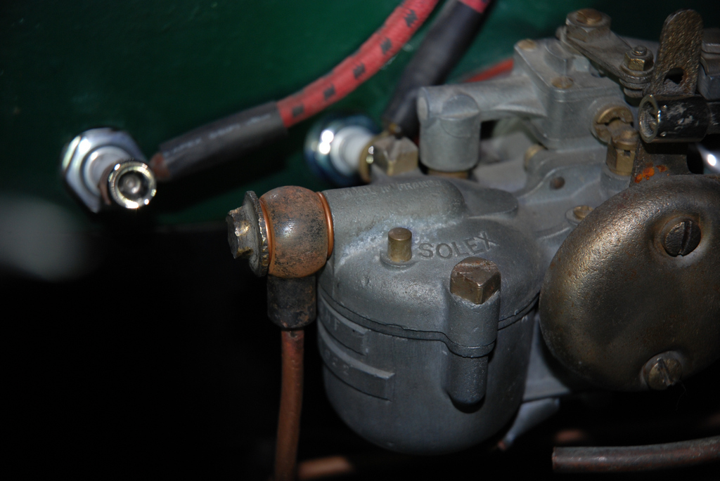 On voit que le circuit sort de la cloison pare feu plus bas que le carbu.
