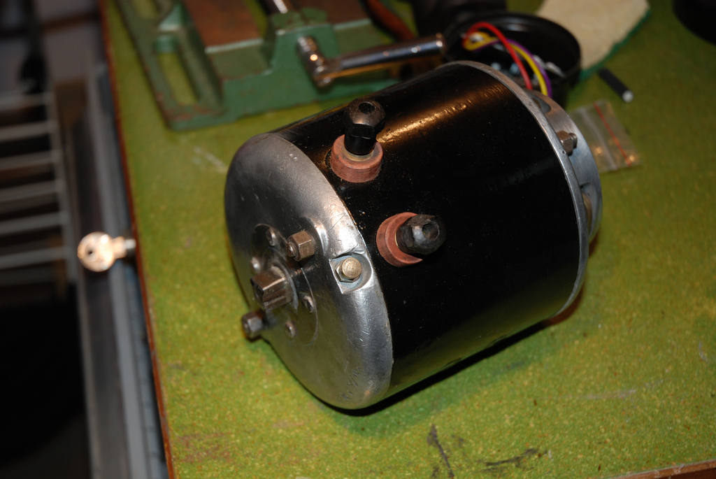 :arrow: J'ai démonté la dynamo pour une petite vérification (continuité, charbons) et le remplacement d'une des 2 bornes.