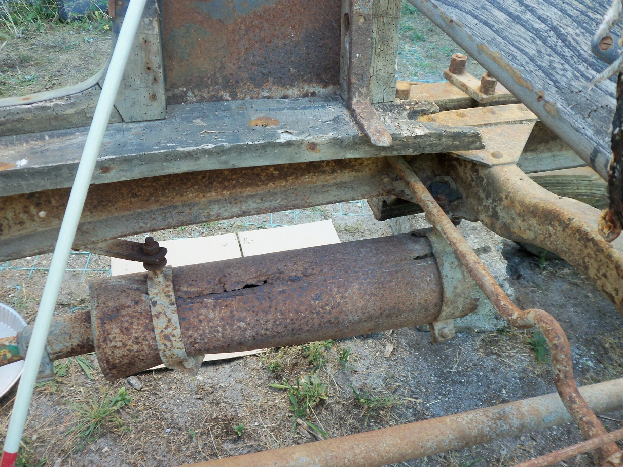 La barre de frein à main au niveau de la poulie du tachymètre. Tordue et entamée par la courroie