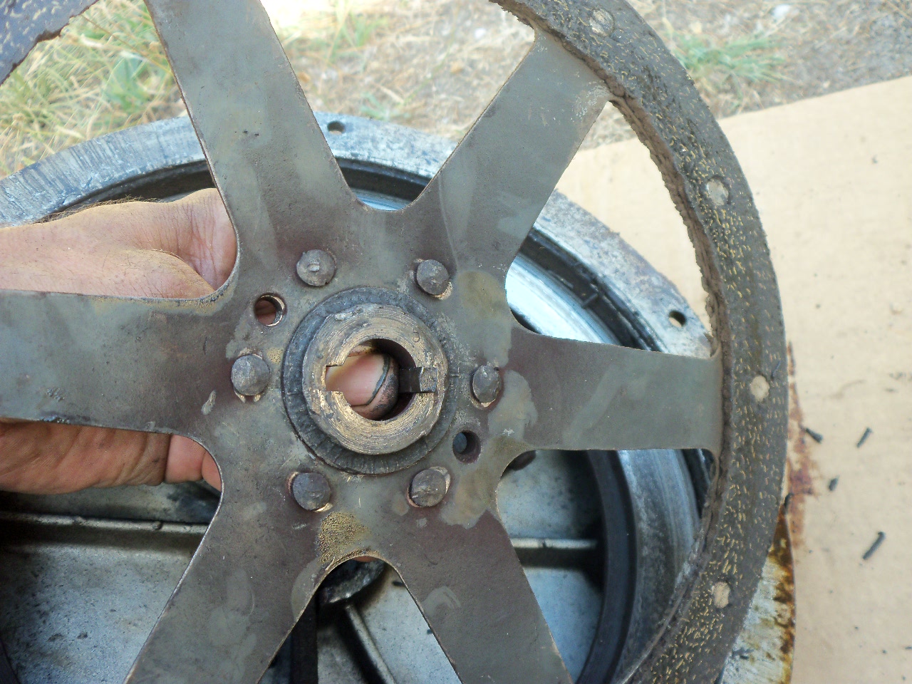 qui m'a fait ch....suer car moteur bloqué. Finalement, j'ai dévissé tout ce que j'ai pu. Emu par temps d'efforts, elle a fini par céder.