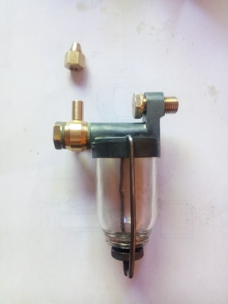 J’ai brasé les raccords à l’argent. Pour moi le filtre Técalémit est plus approprié que le filtre plastique actuel qui est fait pour filtrer avec de l’essence sous pression de la pompe. La voiture fonctionne parfaitement bien.