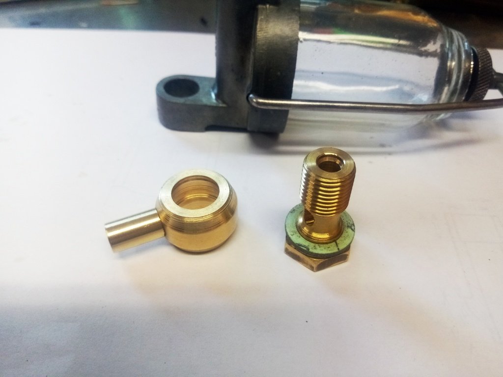 Je les ai fabriqué sur mon tour en partant de barre de laiton hexagonal de 17 mm et de 14 mm, j'ai fais les filetages avec filière et taraud, j'ai pris aussi du laiton de diamètre 10 et 25 mm, car je n'en pas trouvé ce genre de raccord en laiton.