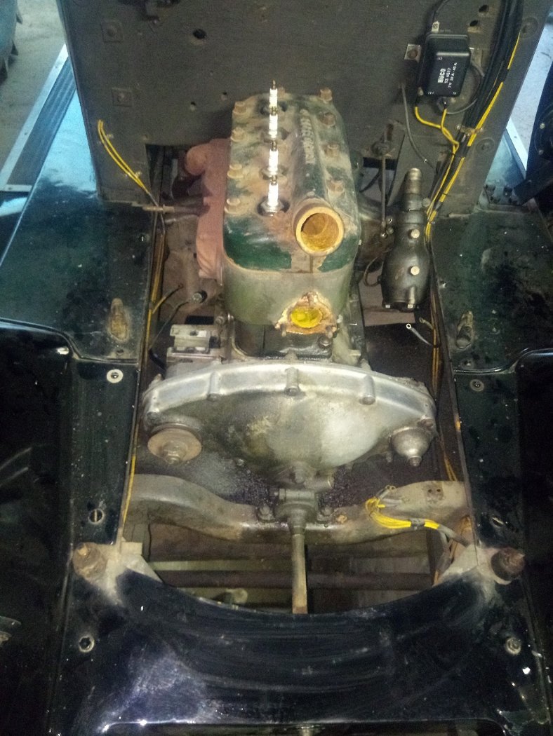 Pour l'instant j'ai déjà démonté la transmission et sortie la boite, c'est la deuxième fois, plus une autre fois sur la voiture de David pour lui reprendre son embrayage, donc je maitrise bien, je démonte le tambour de frein et la tulipe d'arbre pour la sortir facilement par l'intérieur. Il va falloir maintenant que je m'attaque à sortir le moteur, là ça serra surement moins facile, j'ai vu que les boulons de fixation coté volant ne sont pas très accessibles et qu'ils sont rouillés ! et en plus pour sortir l'échappement, je vais probablement devoir utiliser le chalumeau.