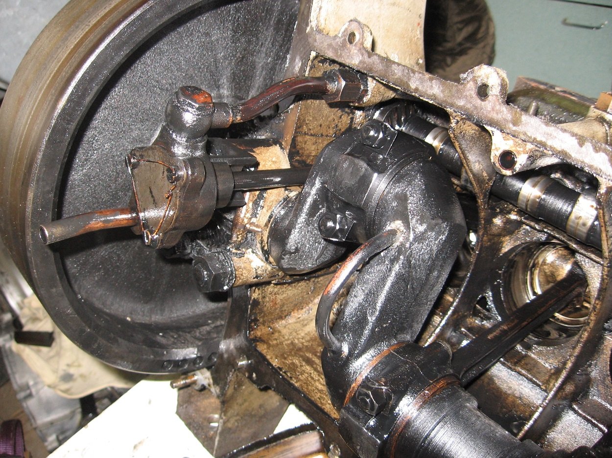 Les symptômes peuvent faire penser à une obstruction du passage de l' huile dans le vilebrequin. On peut tester en envoyant de l' air comprimé par la sortie, prise de pression d' huile , à l' arrière du moteur. Il faut, alors, que l' air comprimé circule jusqu' à la bague avant du vilebrequin. On le constate après avoir enlevé le carter : ça doit chuinter un peu au niveau de la bague.