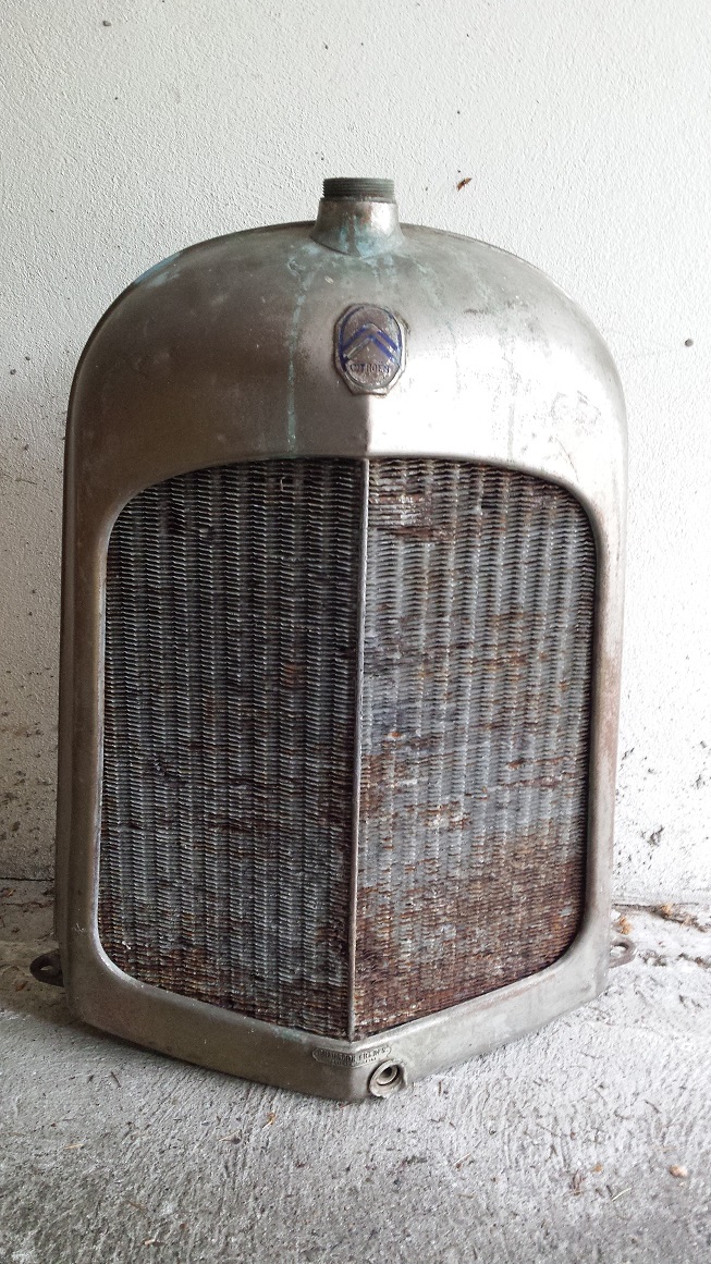 Calandre en bon état pour nickelage (non corrodées notamment autour du bouchon et au niveau de la tresse à capot.