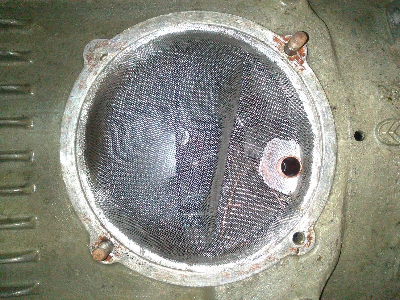 Quand on démonte un vieux moteur, on constate que ce tamis est rouillé et désagrégé à cause de l' eau qui a stagné au fond du carter.