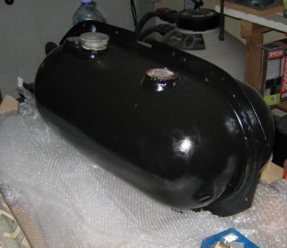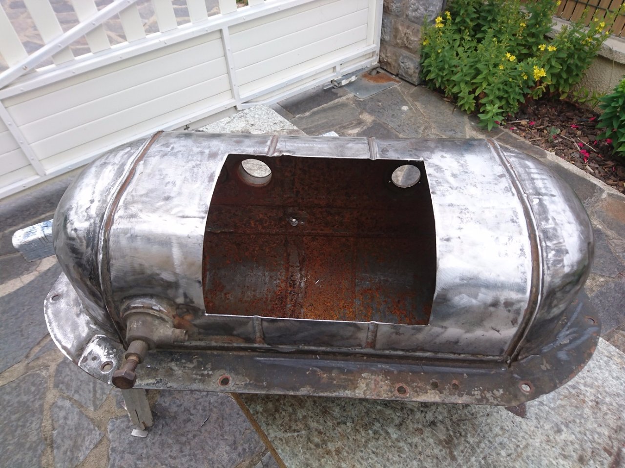 Le réservoir est d'origine et n'a pas été modifié voir photo jointe de mon réservoir restauré qui n'attend plus que le robinet d'essence et la jauge que je suis en train de terminer. Ton réservoir est-il différent ? forme cylindrique ?