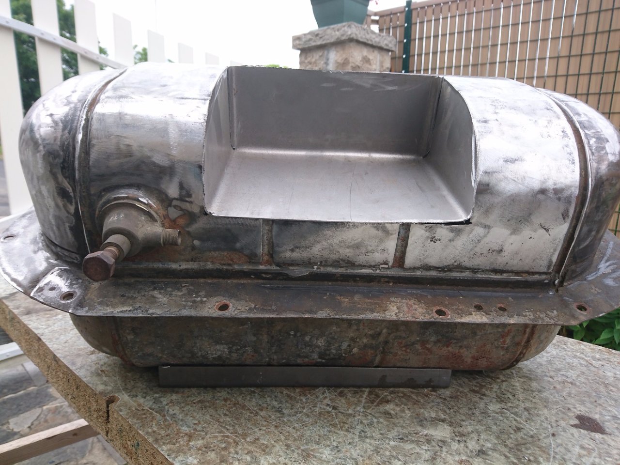 voila la modification du réservoir essence pour la montage de la culasse semi culbuté energic , reste la soudure ça sera fait demain ,
