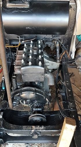 voila le moteur est en place et fixé au châssis seulement la boite ne jointe pas au moteur il manque 2, 3 cm le moteur a déjà été monté mais comme c"était une passoire je l'ai fait refaire par un pro.