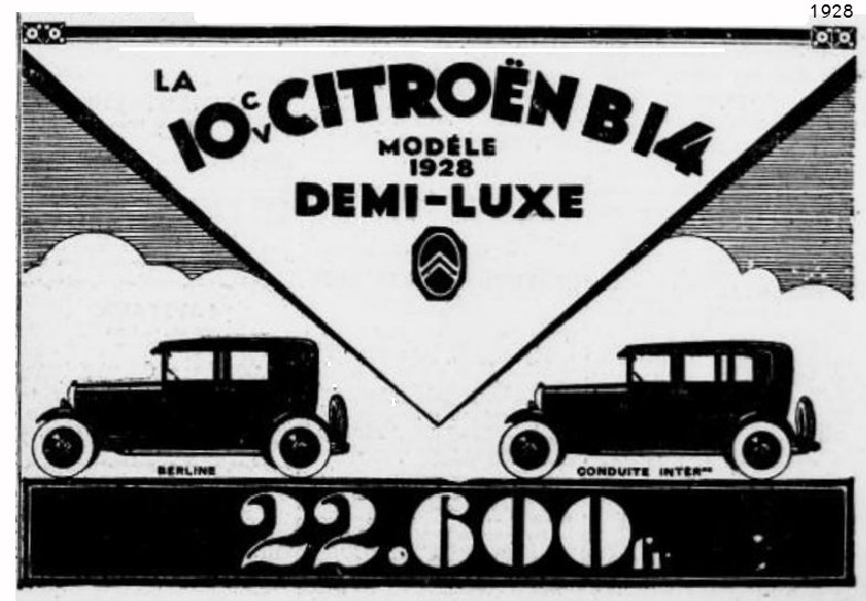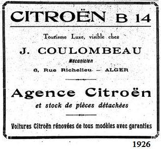 Une publicité de 1926 pour la B14 dans un garage Citroën algérien.