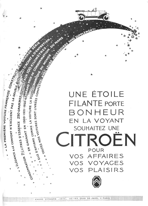 une publicité de 1927 pour un garage Citroën qui parle de transformations .