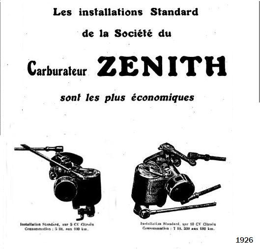 carburateurs Zenith pour Citroën 10HP, et 5cv, 1926