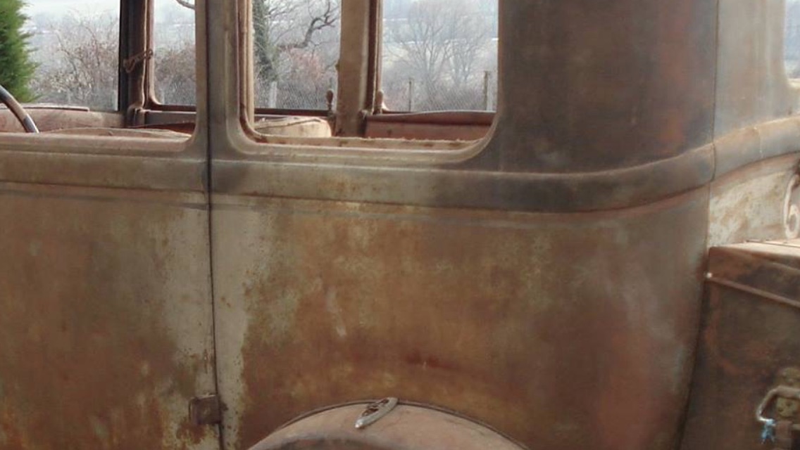 je tente de trouver un maximum d'indices avant le sablage mais il y a plus de rouille que de peinture.