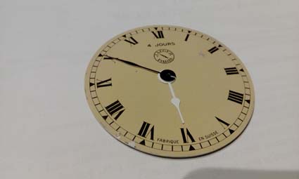 Je serai tenté de la remplacer par un mécanisme électrique, soit en copiant la façade (décalcomanie ? ) soit en achetant une montre identique et aussi inopérante (Le but étant de conserver l'actuelle en stock pour une hypothétique remise en étant 100% d'origine plus tard et donc de ne rien faire d'irréversible)