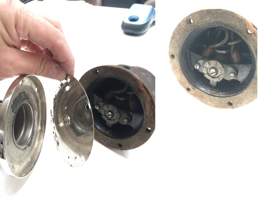 Sur le disque qui clôt le compartiment du klaxet, il doit y avoir une rondelle avec une dent prévue pour frotter contre la roue dentée qui tourne.