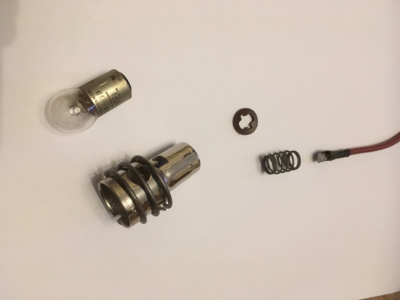 Bonjour Geoff, Ta photo est tres petit mais normalement il y a une petit rondelle en pertinax avec le fil soudé au rivet du milieu. Le fil ne doit pas faire du contact avec le ressort ou le cote du douille. Tu peut enlever cette piece manquante d'une douille d'un compteur de 2cv moderne.