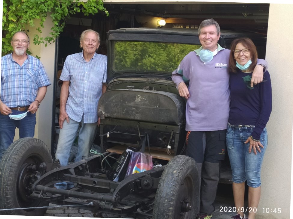 j'ai aussi repris le travail sur ma B2 , peinture par thermolaquage des jantes levier de frein à main ,support de roue de secours , montage des pneus , montage des soupapes et des goujons de culasse