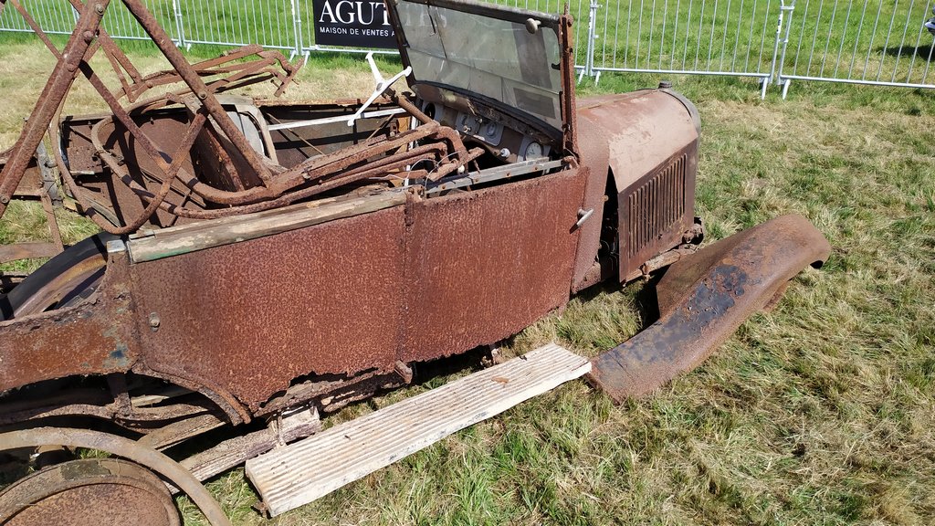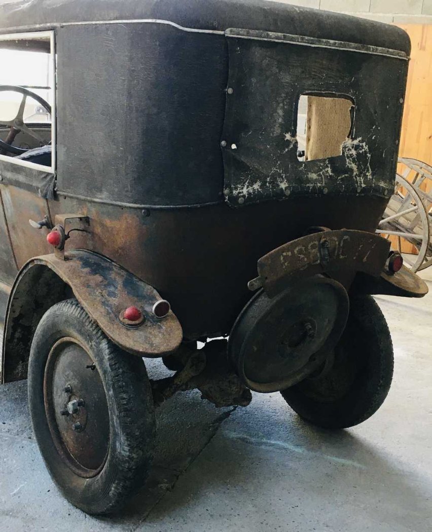 Une B2 Torpédo de 1921, complète dans son jus, moteur non bloqué, ossature bois et carrosserie en état correct, qui n'a pas fonctionné depuis plus de 50 ans, possède un habillage de carrosserie très particulière.