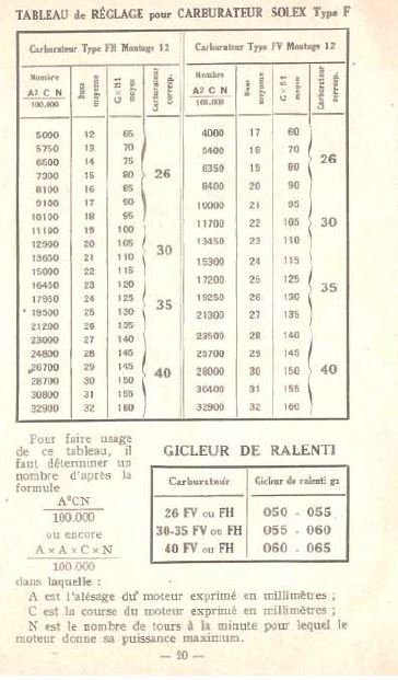 Sur les carburateurs Solex, à gicleur noyé, ( ex : 26 GHF ), le réglage de base est toujours donné par la formule :