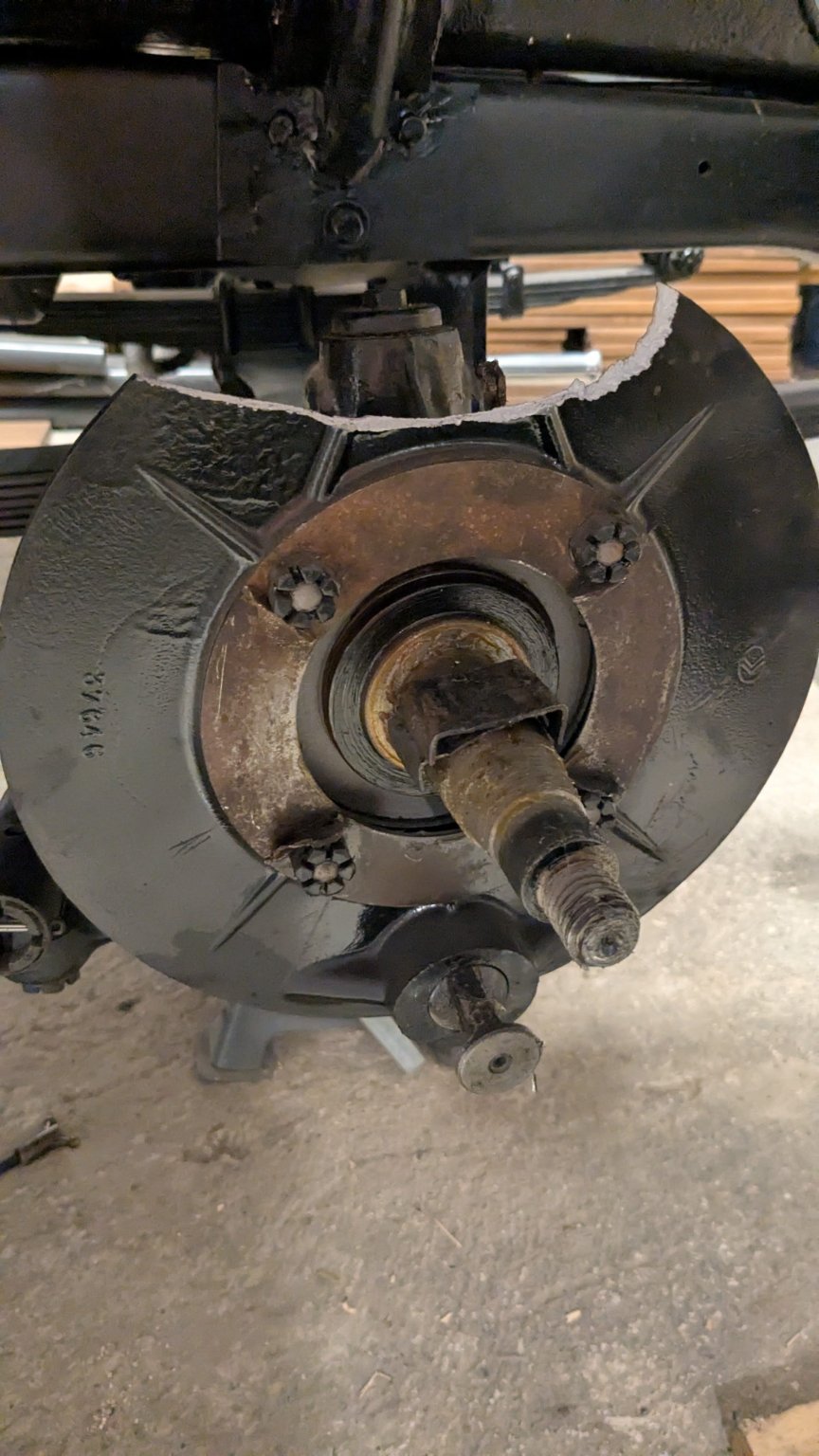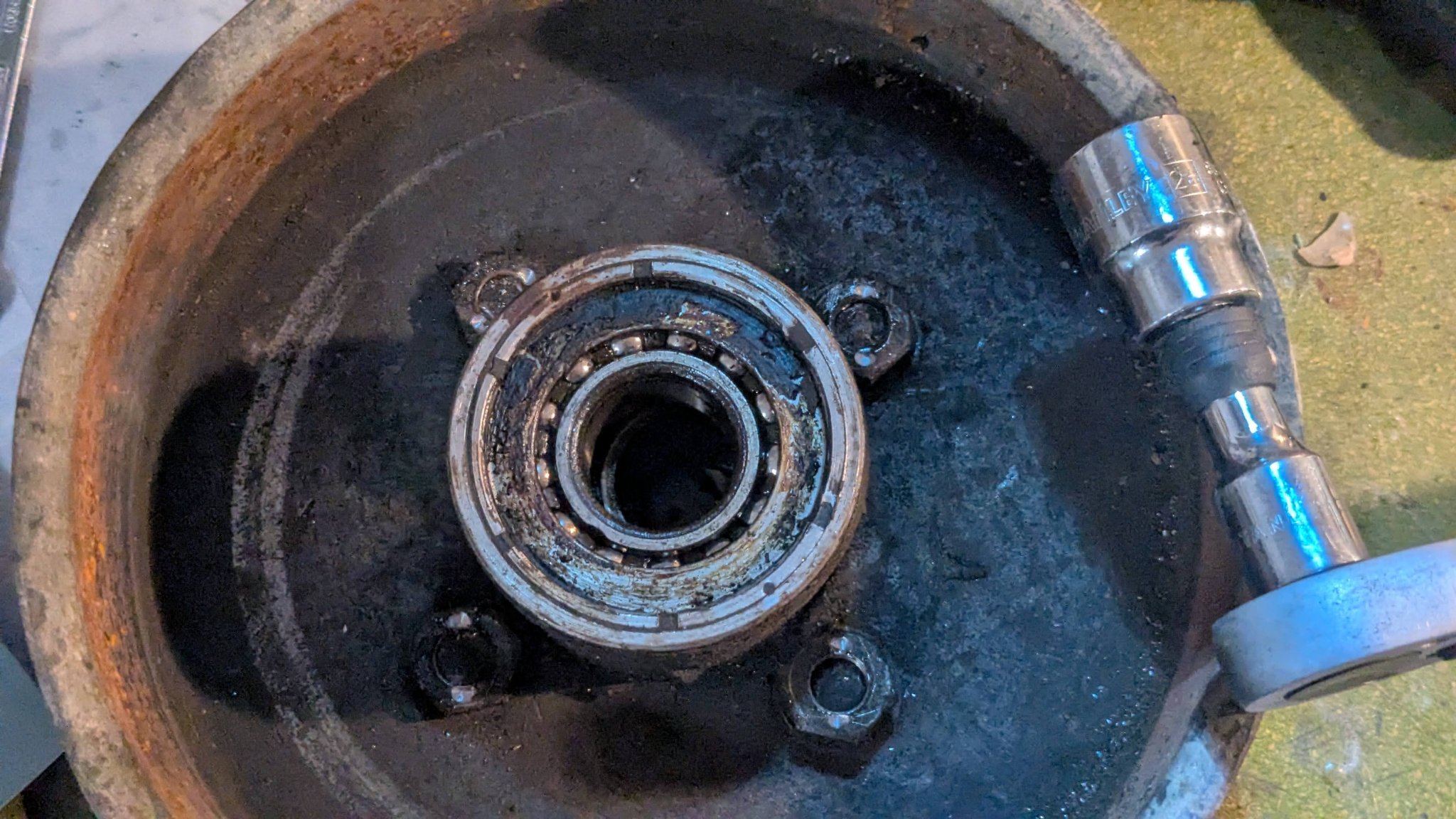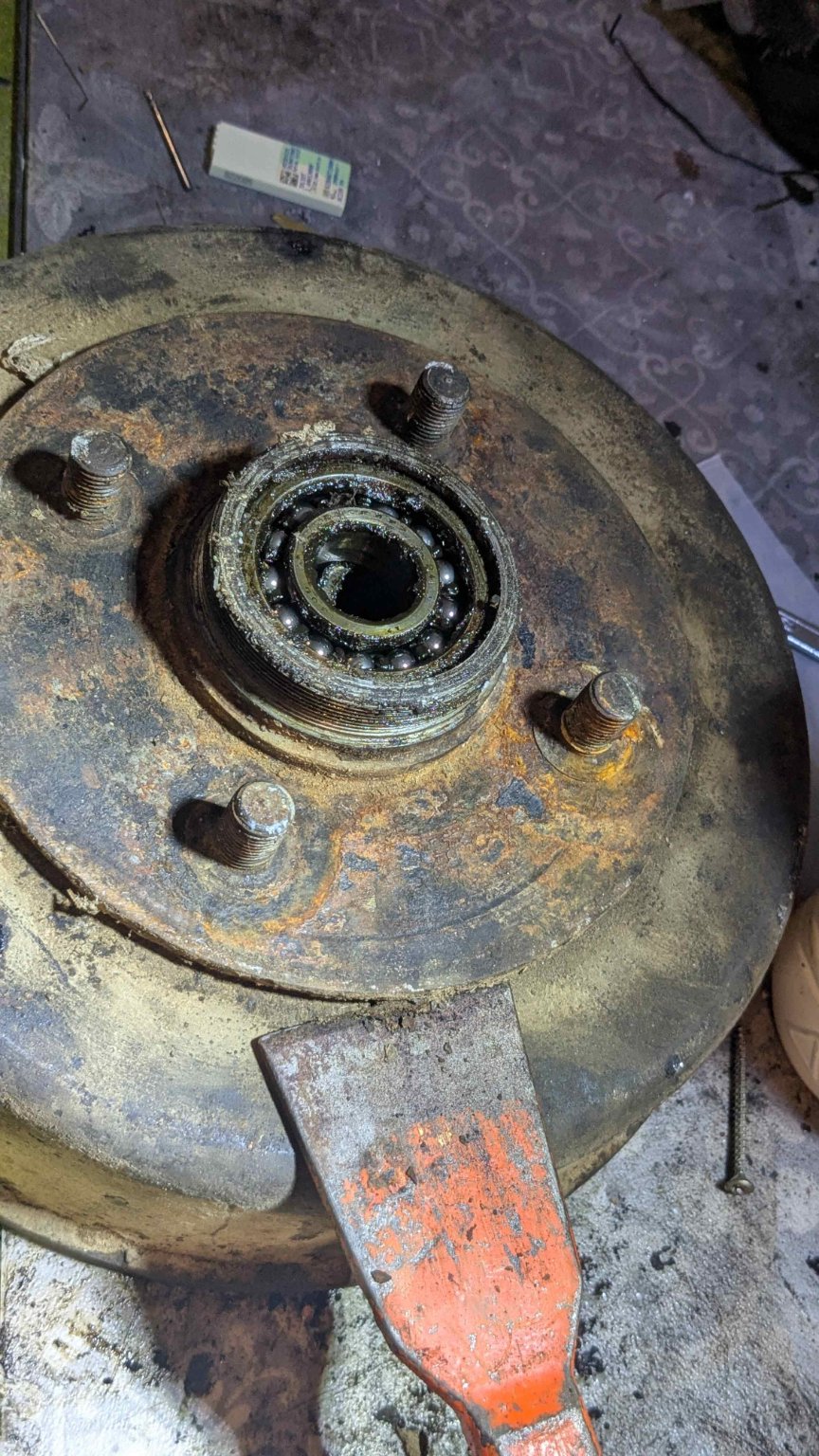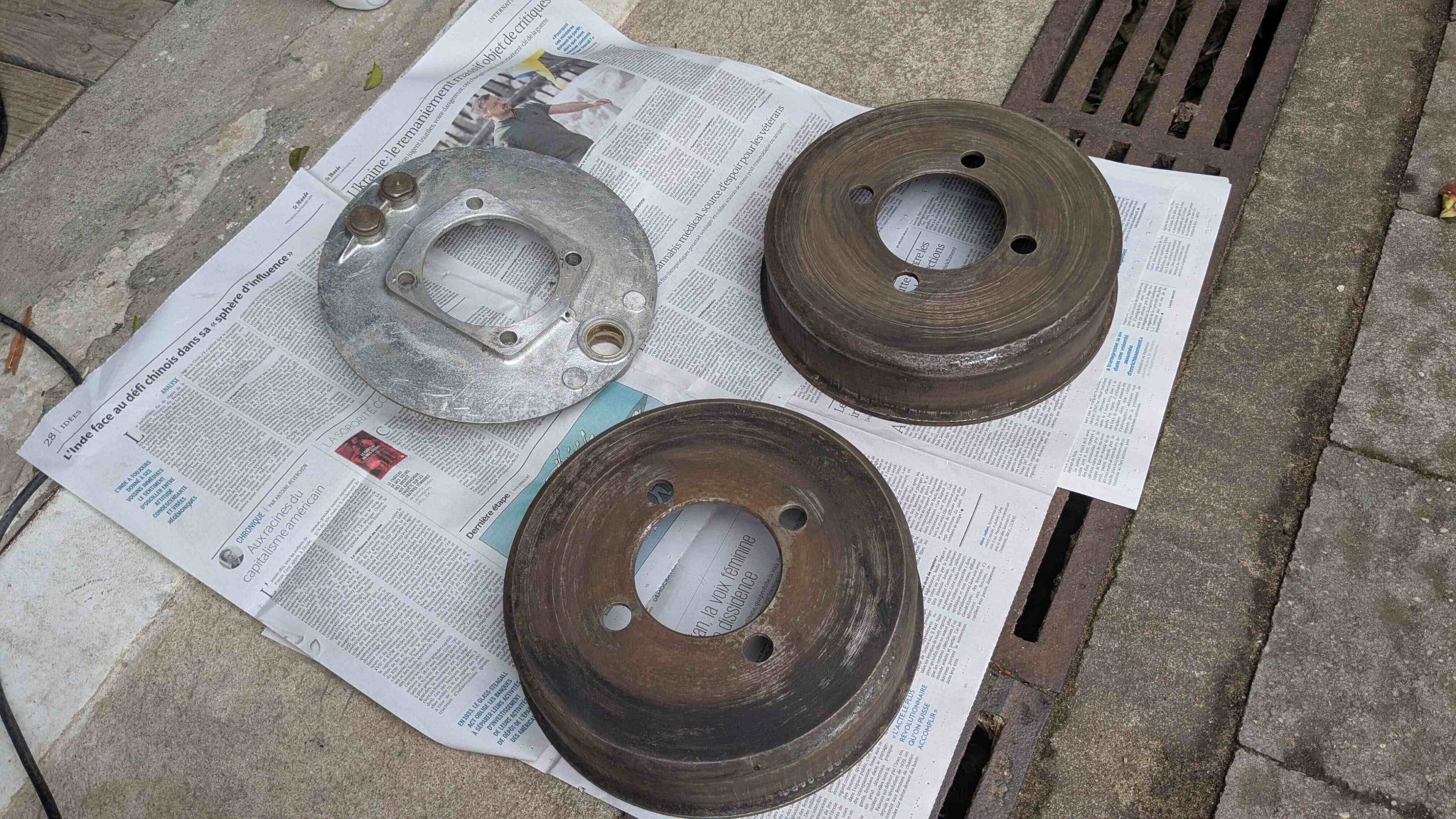Ainsi j'ai pu garder mes moyeux et leurs roulements en bon état, et les associer aux tambours récupérés, qui ont 1 mm d'usure en moins.