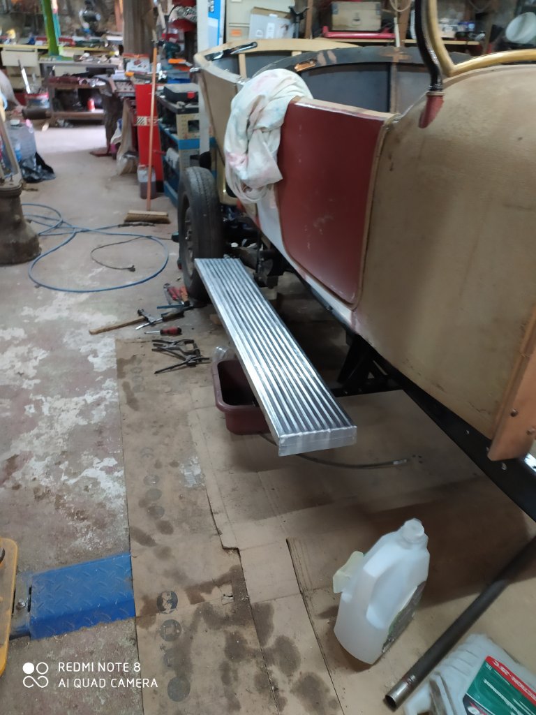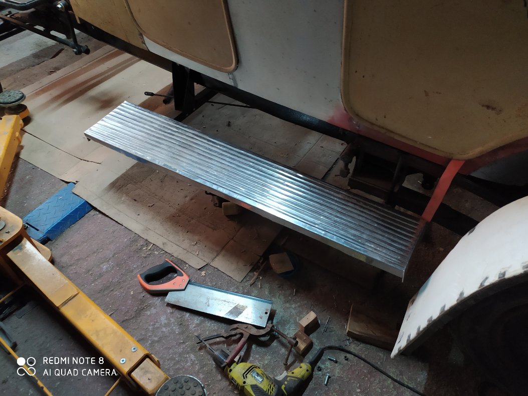 le marchepied est fini et le l'ai posé pour essai il fait 20cm à l’arrière et 22cm à l'avant par contre à gauche celui d'origine n'a pas de tôle en bout coté aile avant j'en avais 2 gauche et pour les 2 c'est pareil pas de tôle