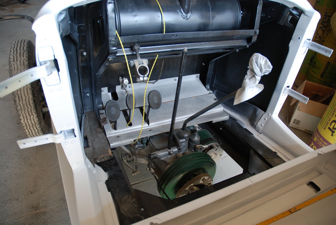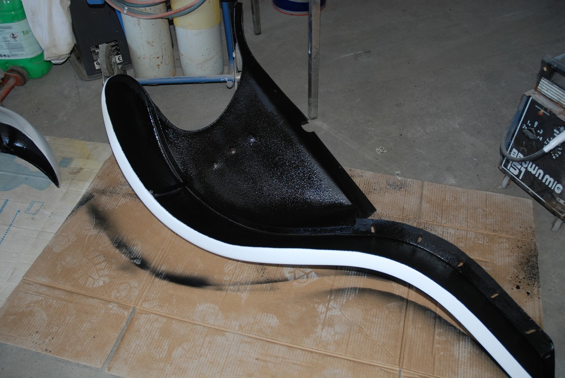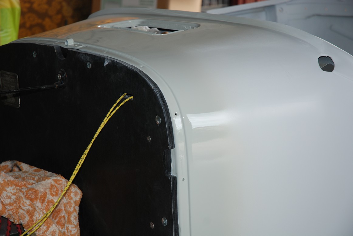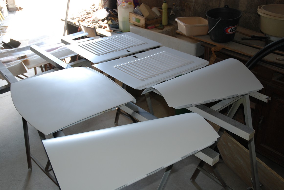 L'intérieur du capot peint en gris, le reste toujours en apprêt blanc
