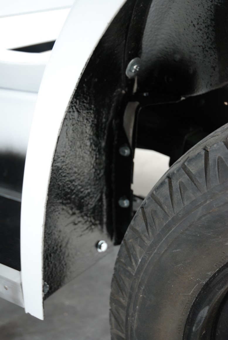 Les dessous d'ailes, passages de roues, dessous de marchepieds sont protégés par un antigravillons + une couche de noir satiné ce qui facilitera le nettoyage plus tard.