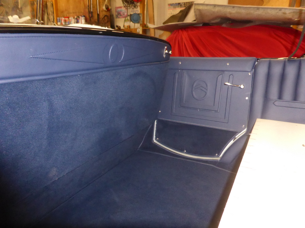Les habillages latéraux sont faits, portes comprises, ainsi que l'habillage du dos de banquette avant et les tapis.