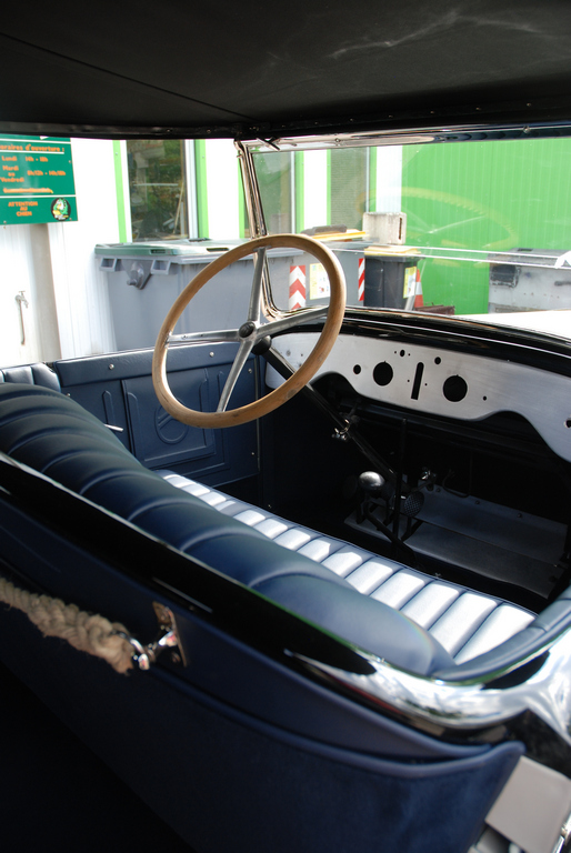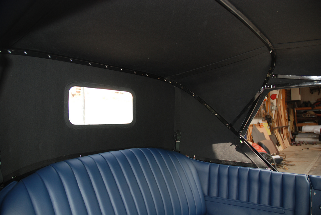 Un bon point pour qui identifiera la voiture rouge et blanche La capote est finie et en place A présent il faudra s'occuper de la planche de bord C'est beau et croyez moi très confortable ! Entorse concédée à l’authenticité : les bois en haut de portière sont vissés pour obtenir un meilleur ajustement et une tenue plus fiable.