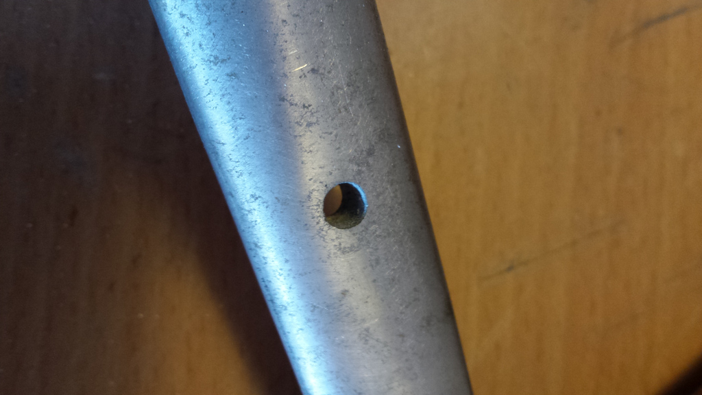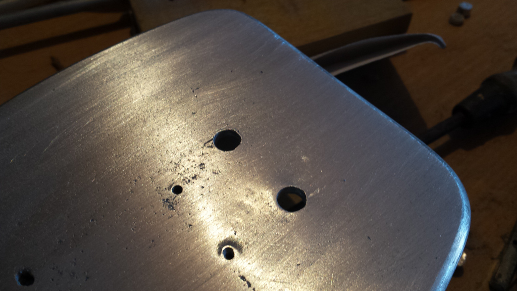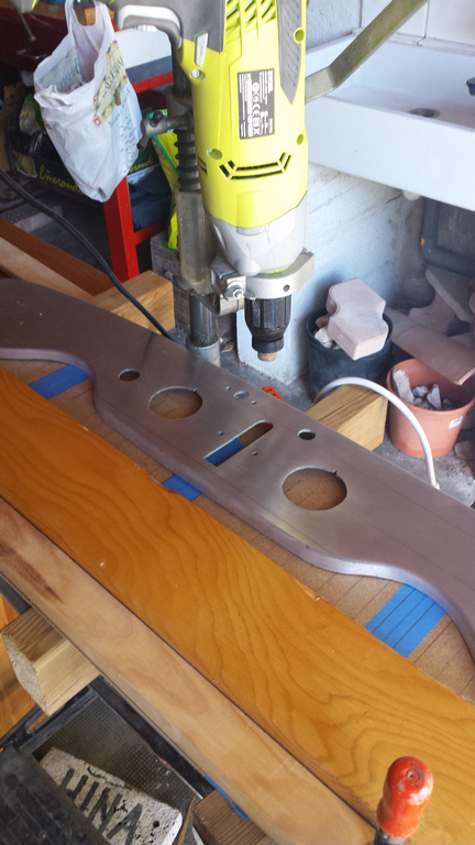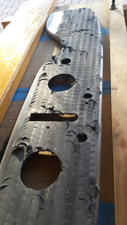 Trous dans le tableau de bord. j'élargis le perçage à 8 et je mate un tronçon de barre d'aluminium diamètre 8.
