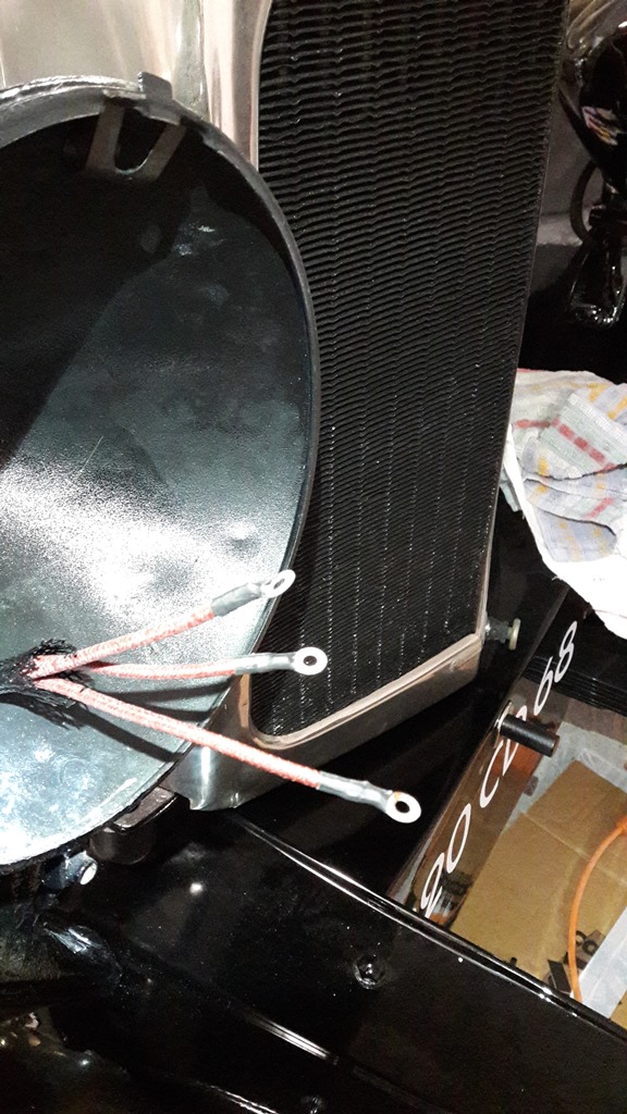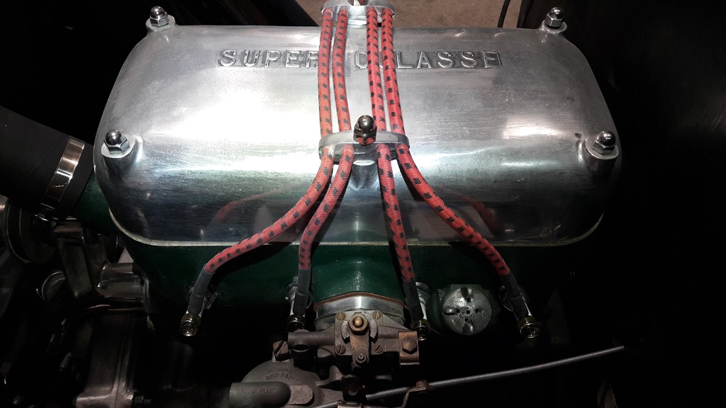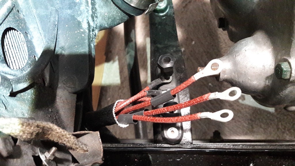 Câblage à gaine tressée, cosses : Fils de bougies OK : Vue de la planche de bord bouchonnée en remontage : Plaque gravée à mon nom : Compteur OS, et la tirette refabriquée : Préparation des feux AR, supports maison :